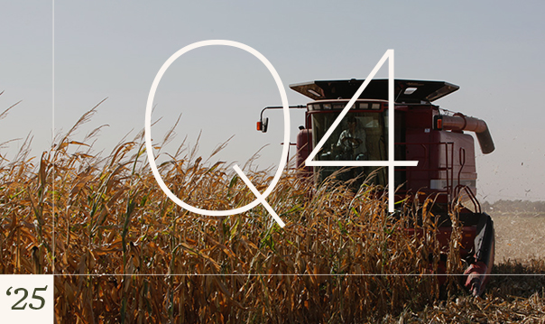 While the early and middle parts of the 2025 growing season had a generally favorable weather situation, the season finished with disease and weather issues. Unexpected upward revisions to acres (now the highest planted acres number since the 1930s) in both the August and September USDA reports have led to some price volatility over the last quarter, and production expectations have varied widely.