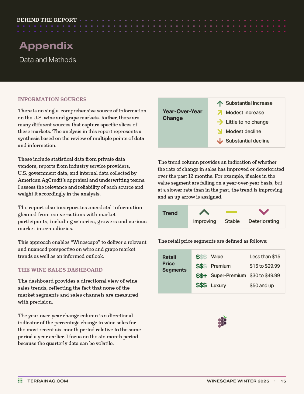 The small 2025 crush will help to reduce the wine inventory overhang, a subject I address in the Trending Topic section of this report. The magnitude of inventory reduction will depend on how many tons were crushed in 2025 as well as the path of wine sales. The imperfect data preclude precise calculations, but under my base-case scenario, I believe inventory will still be modestly long heading into the 2026 harvest. However, I believe that more grapes will be needed in 2026 than were crushed in 2025, offering a slight silver lining.
